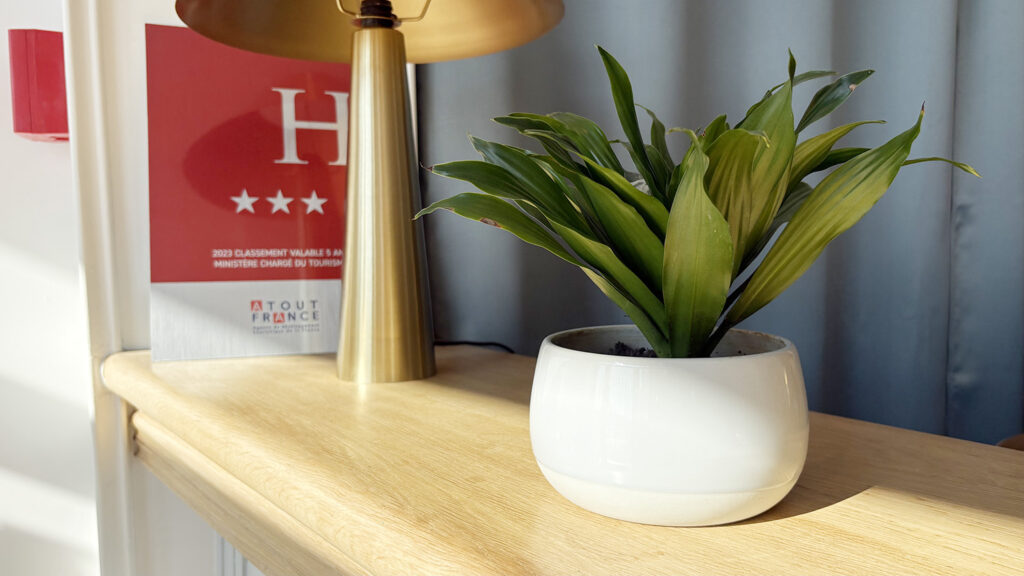 Une chambre quadruple, spacieuse et adaptée aux familles, peut accueillir jusqu’à 4 personnes. Elle offre un espace optimisé et une atmosphère chaleureuse, parfaite pour se retrouver après une journée riche en découvertes entre patrimoine, gastronomie et Champagne.